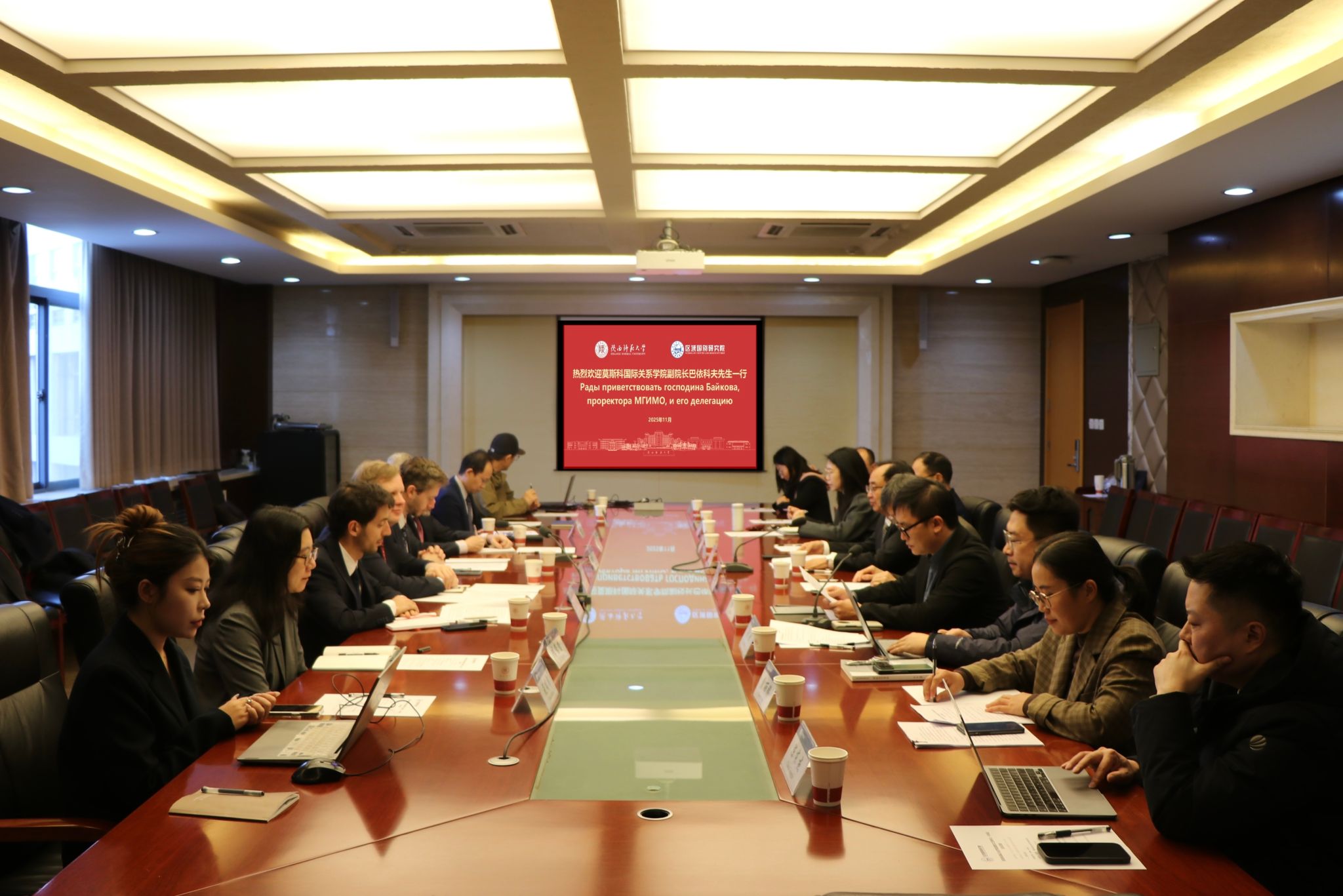 11月13日,我校副校长董治宝在长安校区文汇楼409会议室会见俄罗斯莫斯科国际关系学院副校长巴依科夫一行。双方围绕深化两校合作、拓展交流领域等议题展开深入会谈。区域国别研究院、历史文化学院、“一带一路”文化研究院、国际交流与合作处(港澳台办公室、“一带一路”办公室)、学科建设与发展规划处(“双一流”建设办公室)相关负责人及部分教师代表陪同会见。
