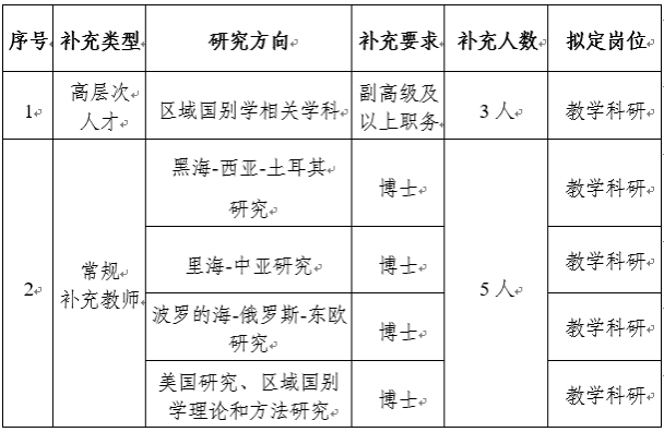 1.具有区域国别学相关学科背景的研究生学历、博士学位;